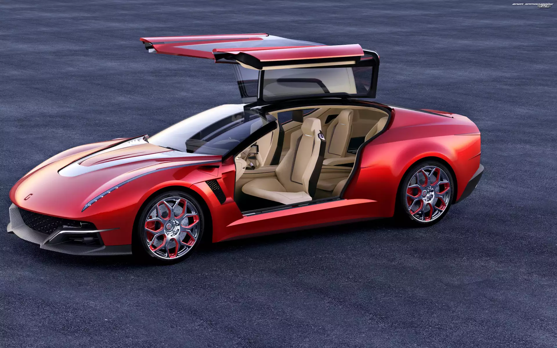 1951, Zabytkowy, Studebaker Woodie Wektorowa, Bugatti Veyron Czerwony, Ferrari, 612 GTO biały, Porsche, Samochód Rajdowy Citroen, DS4 Saab 9-3, Srebrny Mercedes SLS, Brabus Audi TT III Roadster Wydechowa, Volkswagen Tiguan, Rura