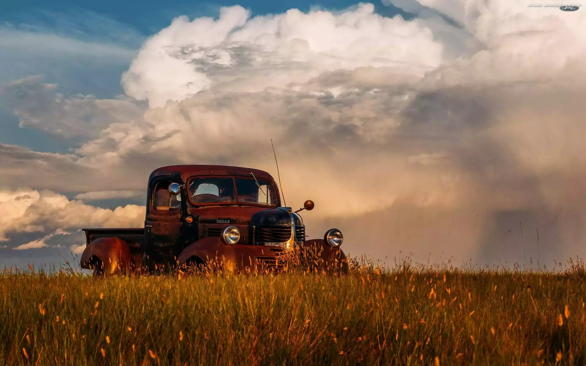 Samochód: Chmury, Półciężarówka, Łąka